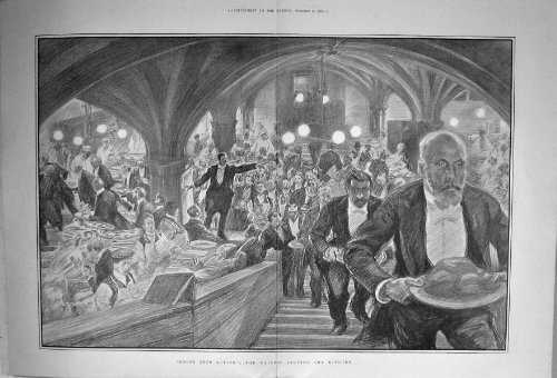 Copie Antique du Seigneur 1902 Maire Banquet Guildhall Waiters Quittant la Cuisine